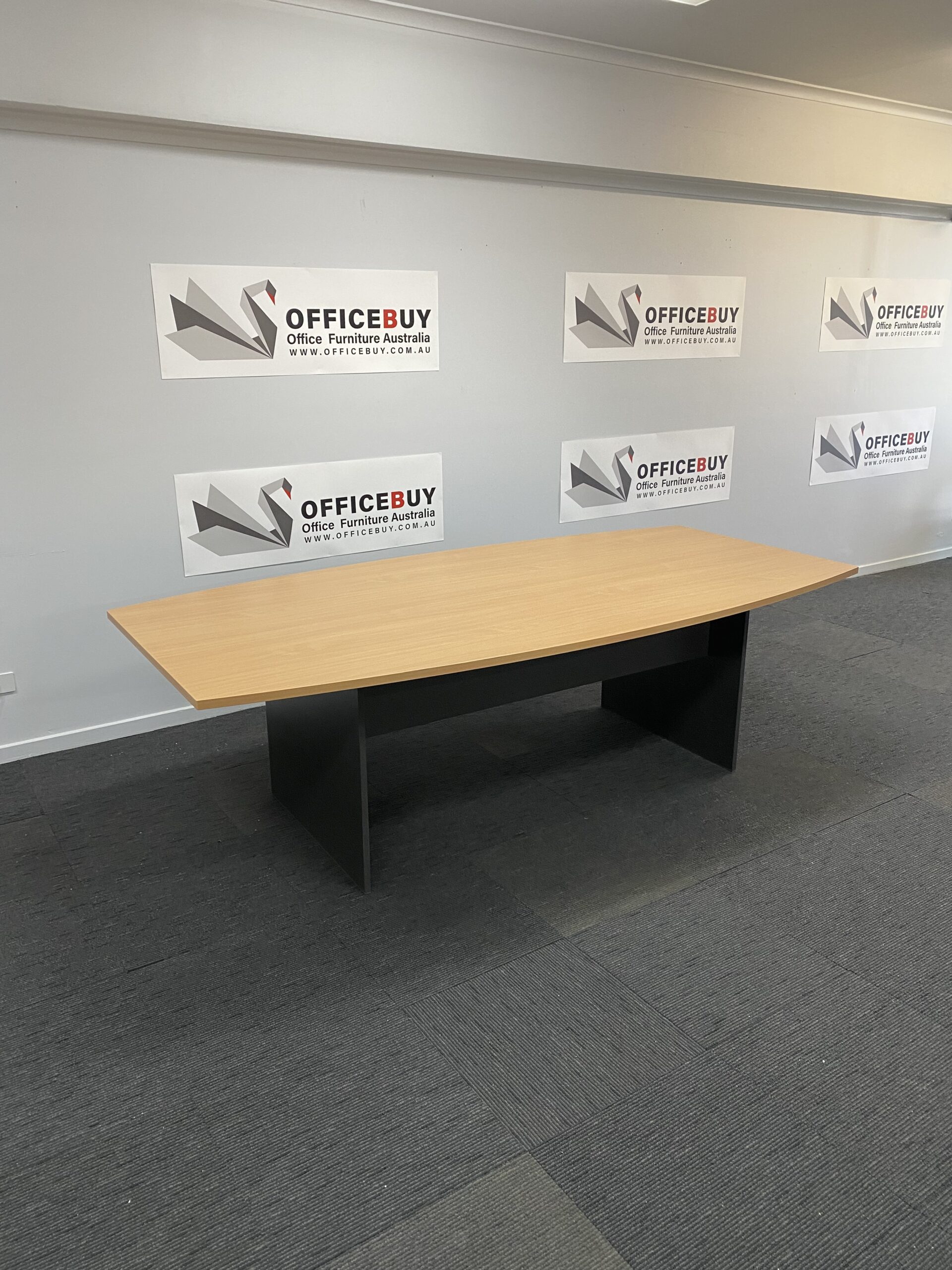 New Boardroom Table-Boat Shape- Beech and Ironstone-2400mm x 1200mm