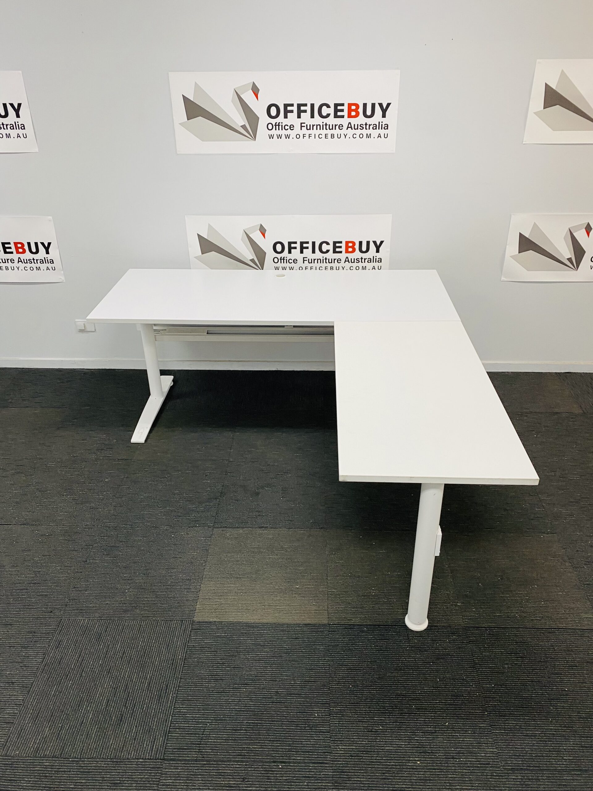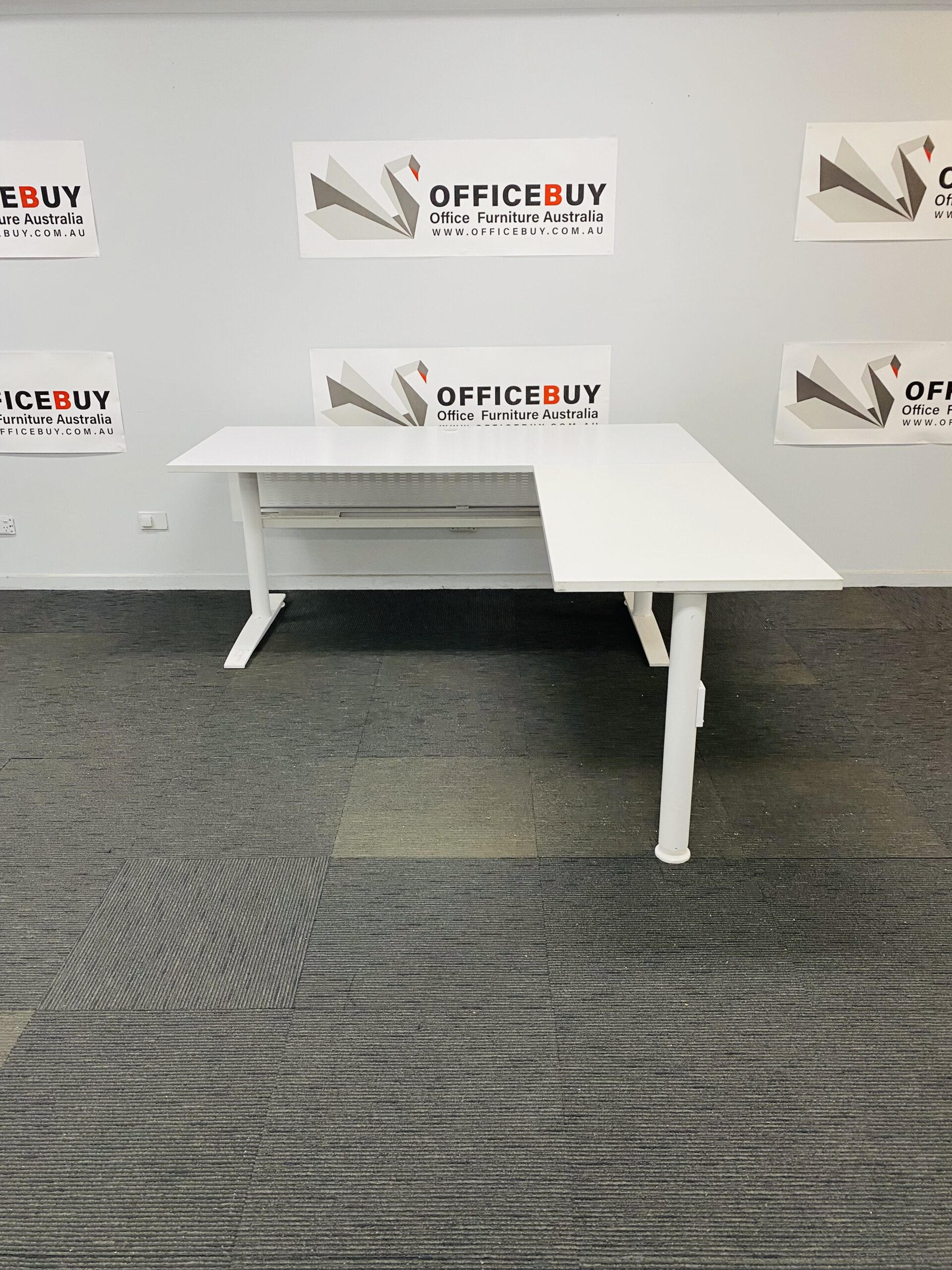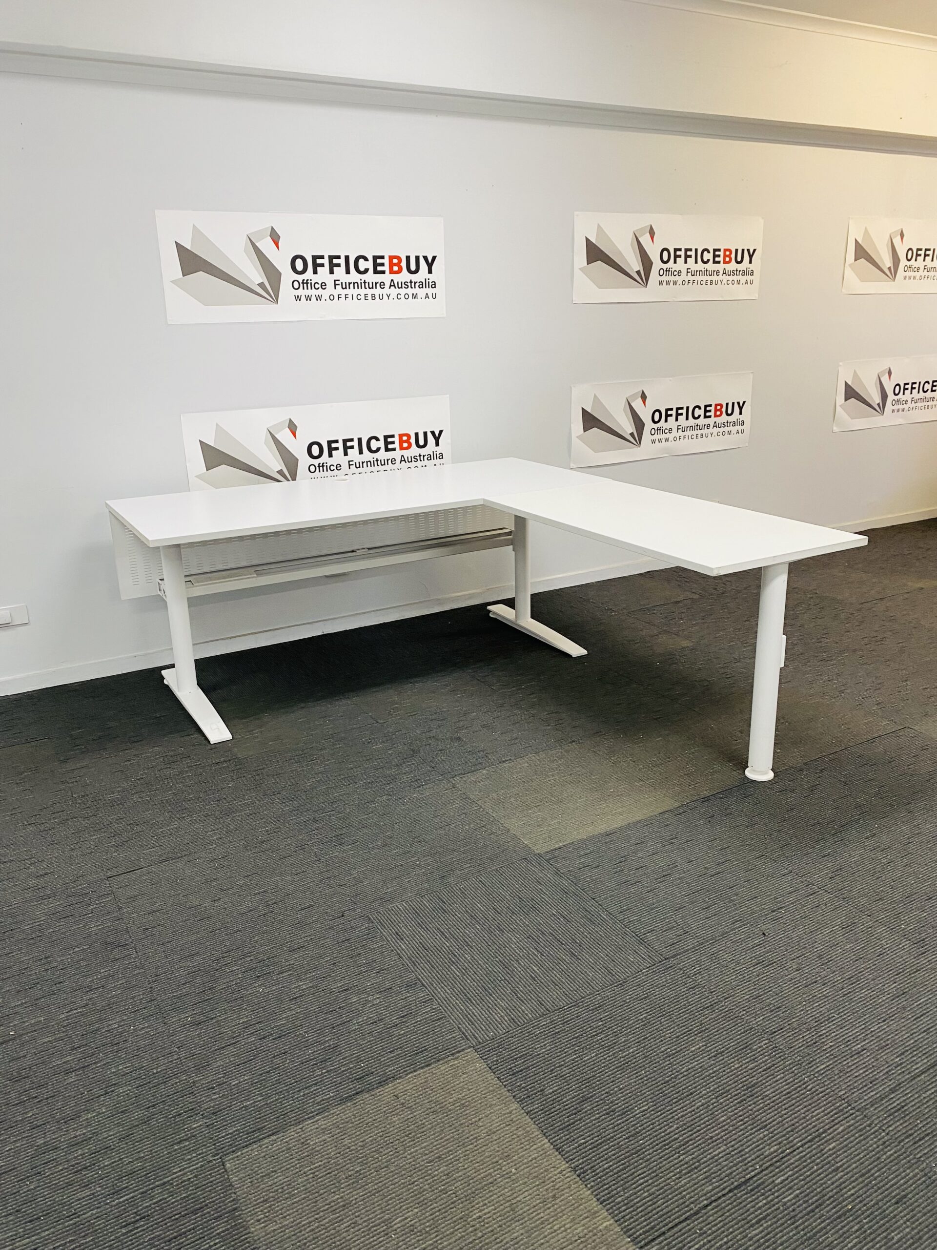 L-Shape Desk with Reversible Return – White Top with White Steel Legs – 1800mm x 1950mm