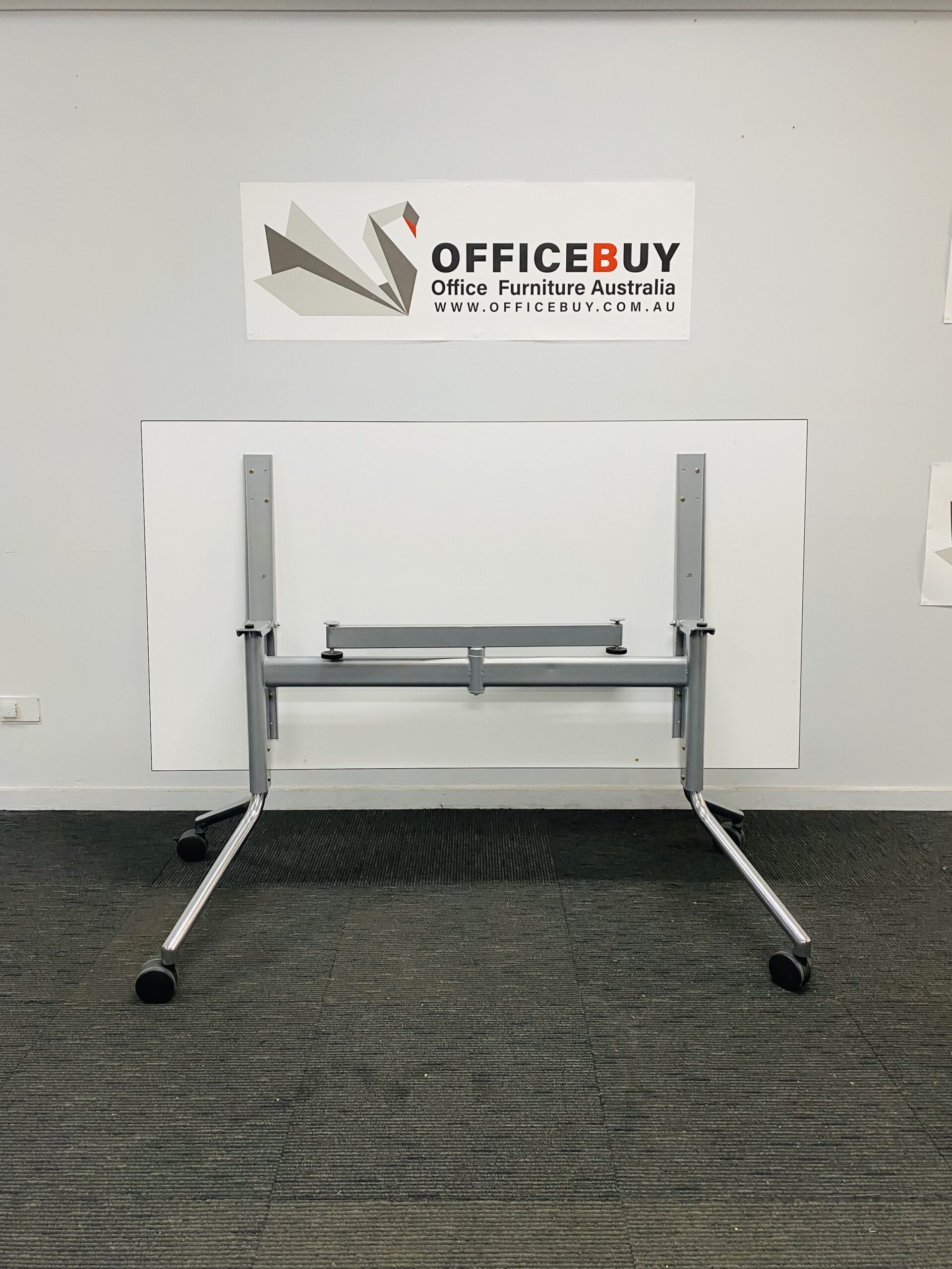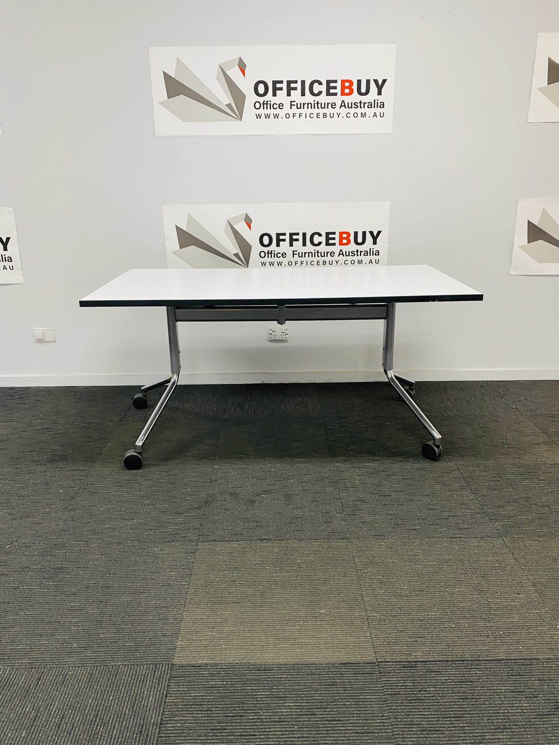 Mobile Flip Top Table – White Top with Chrome Base – 1500mm